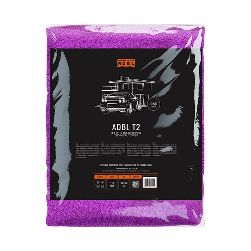 ADBL T2 30x30cm 440 gsm to zestaw 10 uniwersalnych ręczników z mikrofibry o gramaturze 440 gsm, które łączą wysoką chłonność z delikatnością, zapewniając skuteczne i bezpieczne czyszczenie w różnych zastosowaniach detailingu. Ręczniki charakteryzują się wyjątkową miękkością, co sprawia, że są bezpieczne do używania na wrażliwych powierzchniach, takich jak lakier, szkło, tapicerka, czy skóra, zapobiegając ich zarysowaniom. Dzięki swojej wysokiej gramaturze, ręczniki zapewniają doskonałą chłonność, co sprawia, że doskonale sprawdzają się w osuszaniu powierzchni po myciu, usuwaniu nadmiaru wosku lub preparatów ochronnych oraz w polerowaniu. Zestaw 10 ręczników sprawia, że masz zawsze pod ręką czysty ręcznik do każdego etapu detailingu.